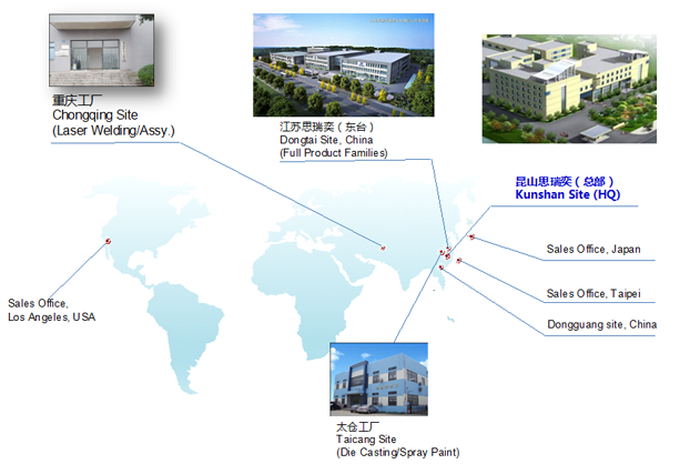 思瑞奕電子有限公司成立于2010年10月,注冊資金7500萬人民幣,總部位于江蘇省昆山市,在重慶、江蘇東臺、江蘇太倉設(shè)有分廠,公司于2011年通過ISO9001/ISO14001認(rèn)證,2013年通過高新技術(shù)企業(yè)和TS16949(IATF)體系認(rèn)定,2016年先后通過知識產(chǎn)權(quán)管理體系認(rèn)證、安全生產(chǎn)標(biāo)準(zhǔn)化認(rèn)證,2017年獲頒江蘇省民營科技企業(yè)、2018年先后獲得蘇州市人民政府認(rèn)定企業(yè)技術(shù)中心、科技部認(rèn)定中小型科技企業(yè)、江蘇省最具成長性高科技企業(yè)、2020年獲得江蘇省人民政府認(rèn)定企業(yè)技術(shù)中心、2021年獲得蘇州市瞪羚計(jì)劃入庫企業(yè)、江蘇省省級工程技術(shù)研究中心、江蘇省專精特新中小企業(yè)等榮譽(yù)稱號......
